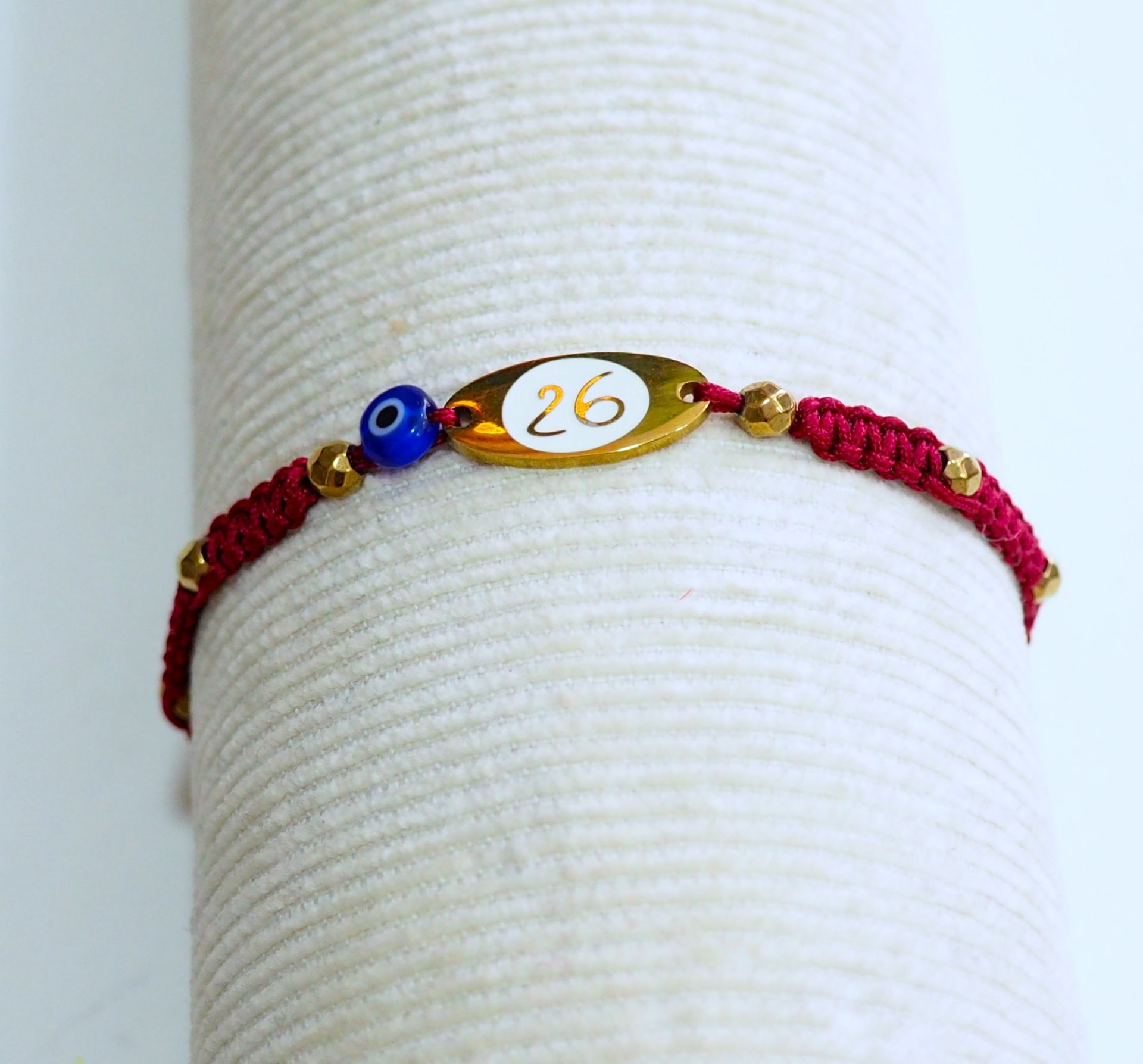 Γούρι βραχιόλι macrame μπορντό από ατσάλι επίχρυσο και Αιματίτη χρυσό