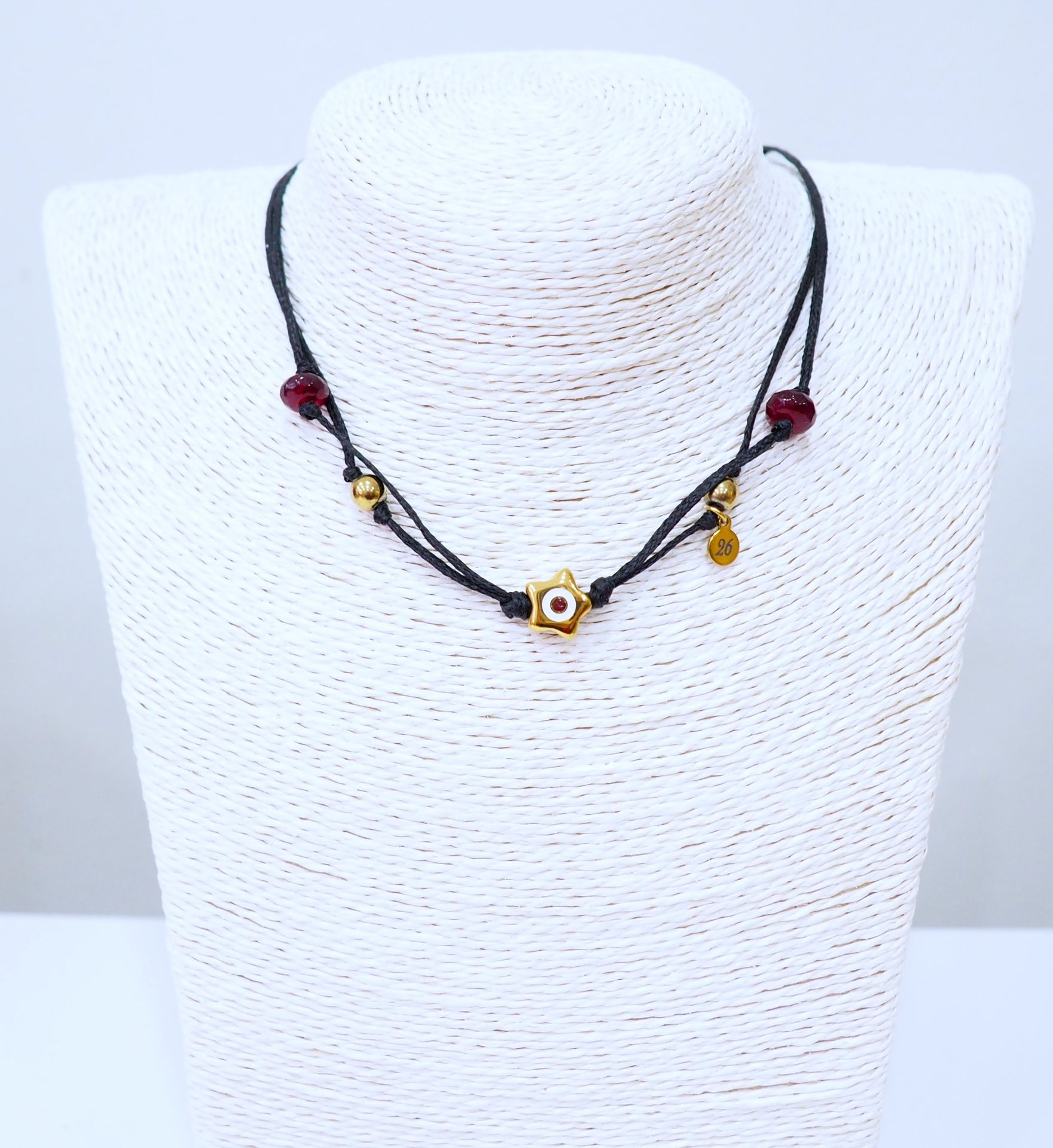 Γούρι κολιέ από ατσάλινο επίχρυσο αστέρι, Νεφρίτη, Αιματίτη σε κηροκλωστή