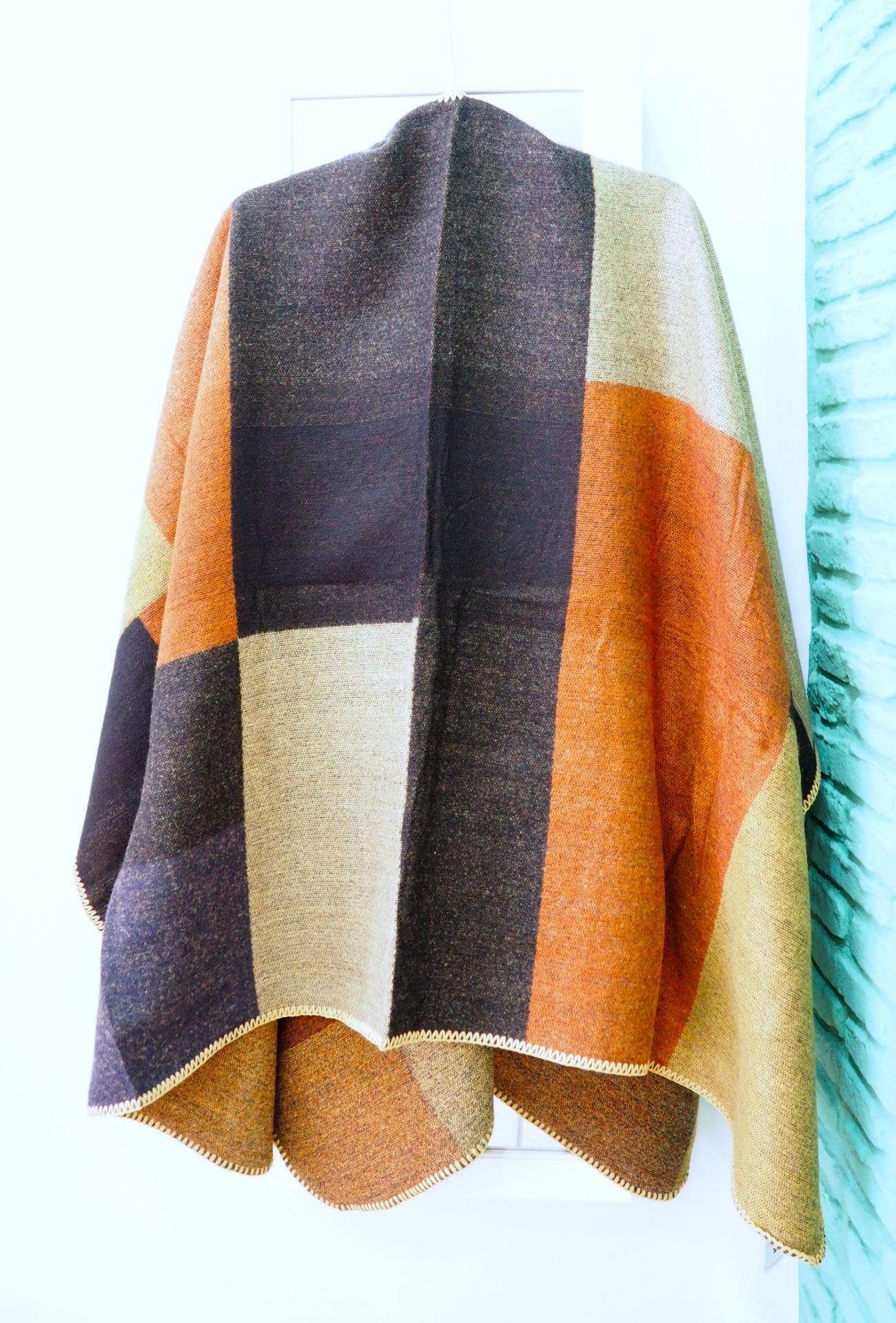 Κάπα διπλής όψης 80%viscose και 20%wool καρό μεγάλο καφέ - μπεζ