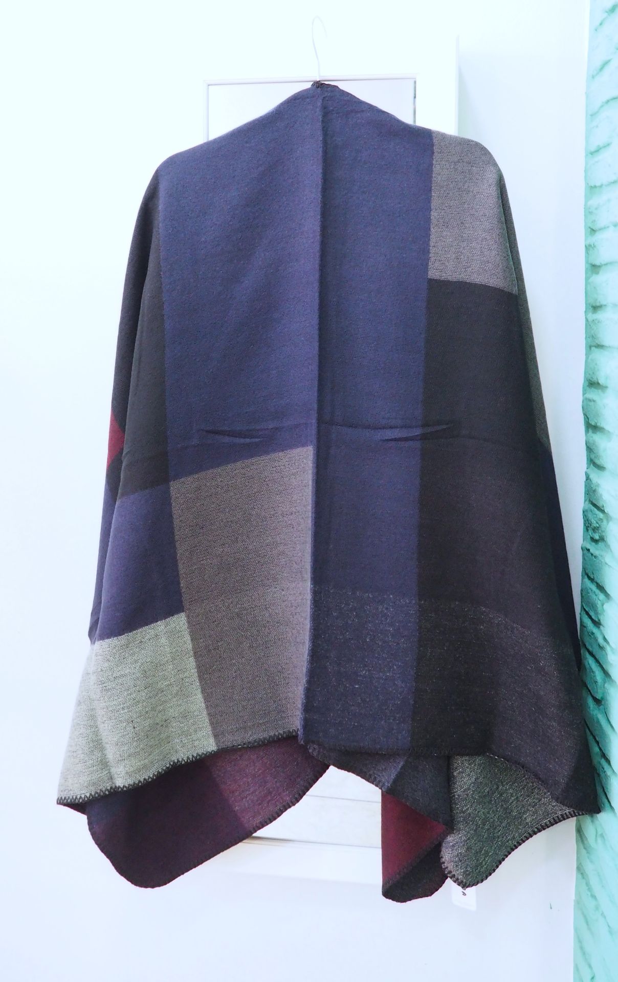 Κάπα διπλής όψης 80%viscose και 20%wool καρό μεγάλο μπλε - μπορντό.