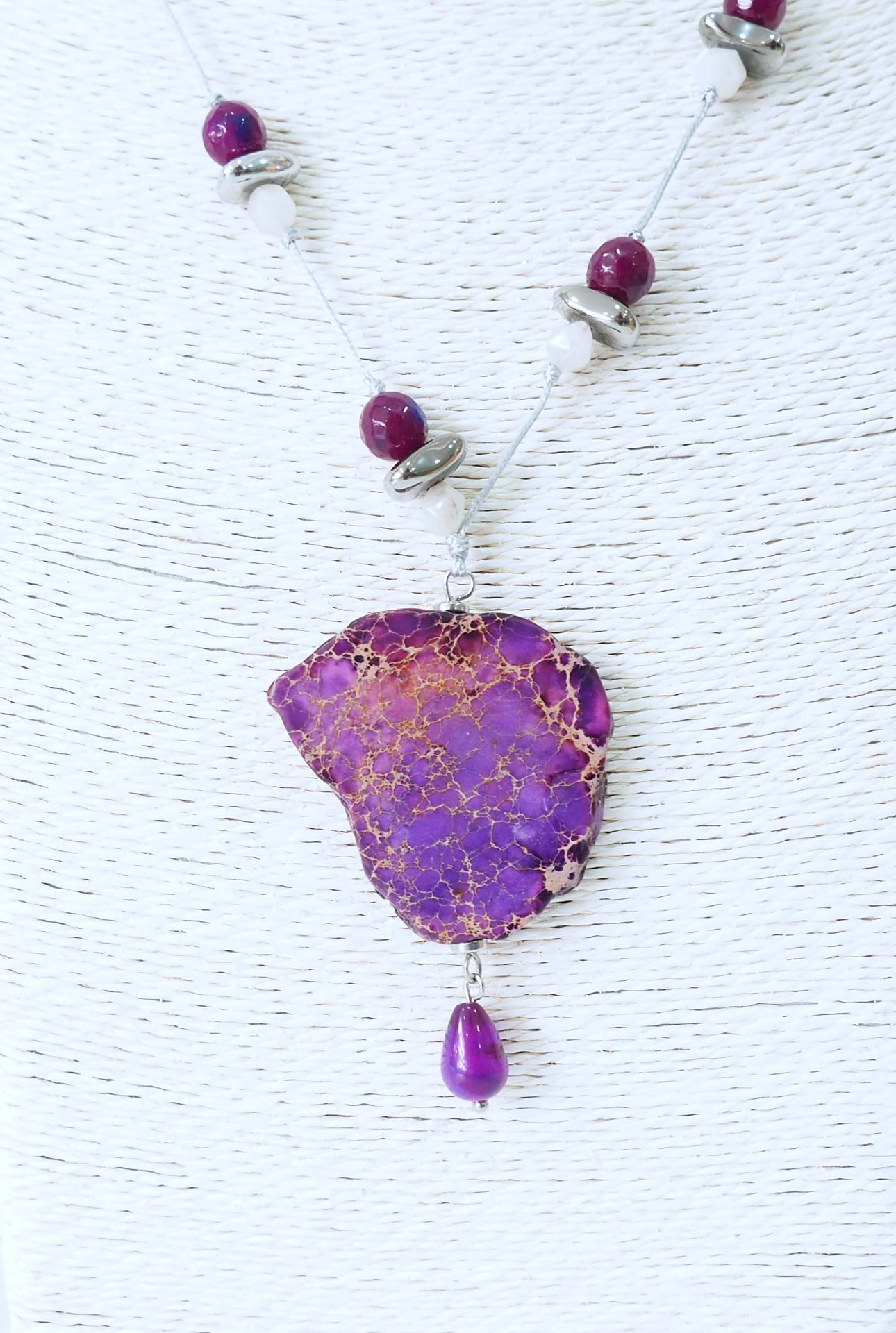 Κολιέ από Τιρκουάζ, Νεφρίτη και Αιματίτη σε κορδόνι κερωμένο.