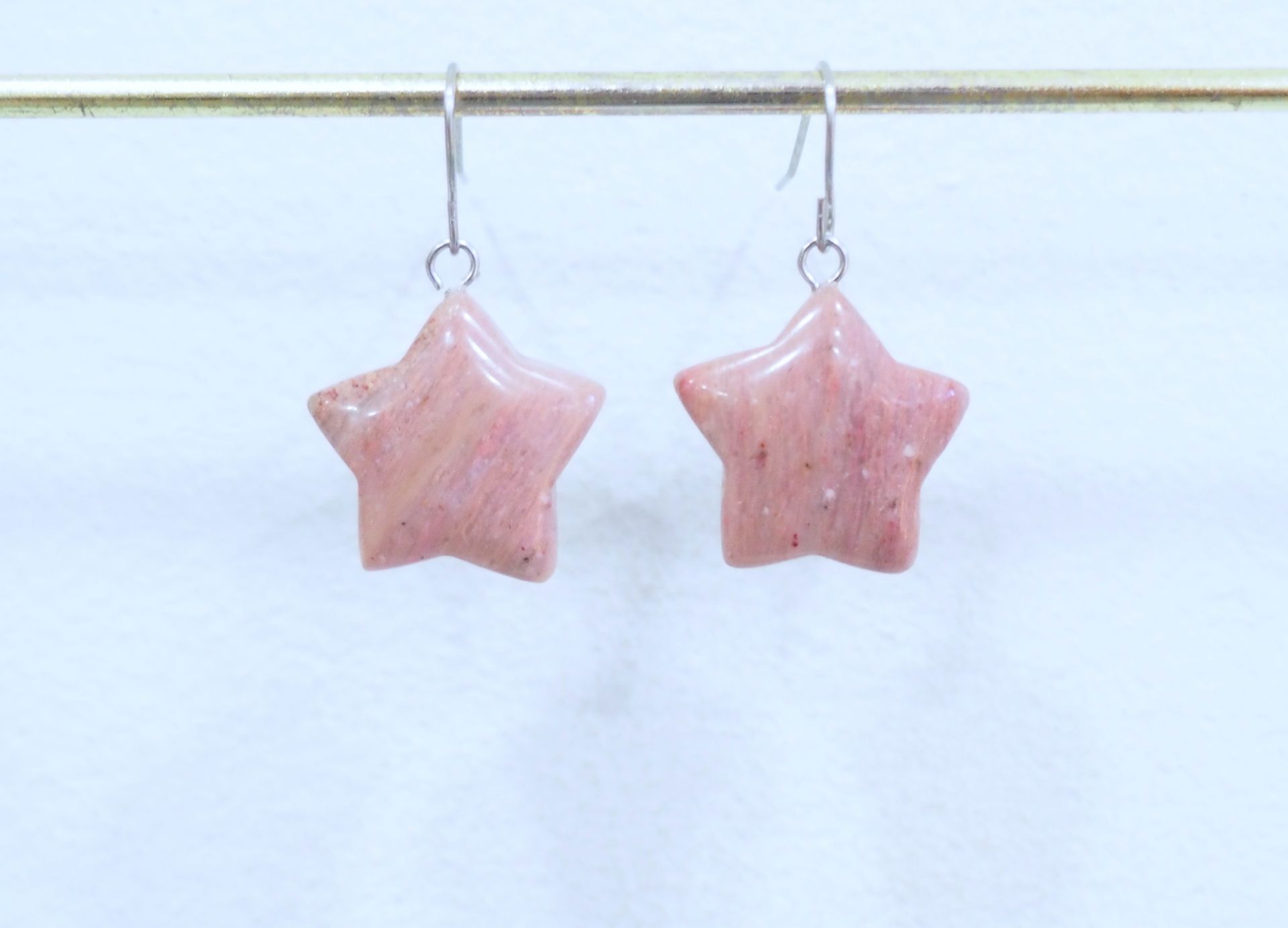 Σκουλαρίκια 3.5x2cm. αστέρια από Ροδονίτη και ατσάλινα γαντζάκια. Ο Ροδονίτης είναι ημιπολύτιμος λίθος και καλή ενεργειακά πέτρα με πολλές ιδιότητες ο οποίος διώχνει τη σύγχυση και προωθεί την κατανόηση και την αποδοχή του εαυτού μας.