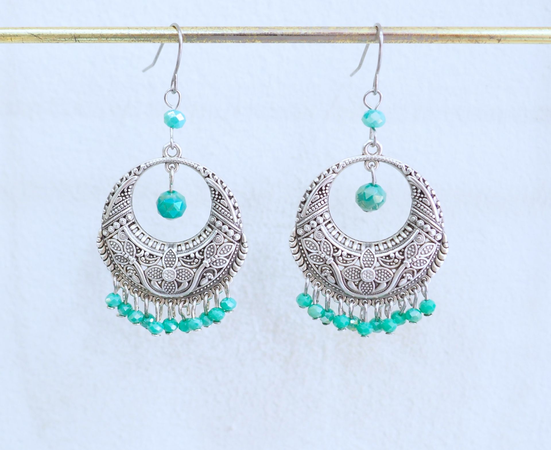 Σκουλαρίκια επάργυρα boho πολυέλεοί με κρυσταλλάκια βεραμάν